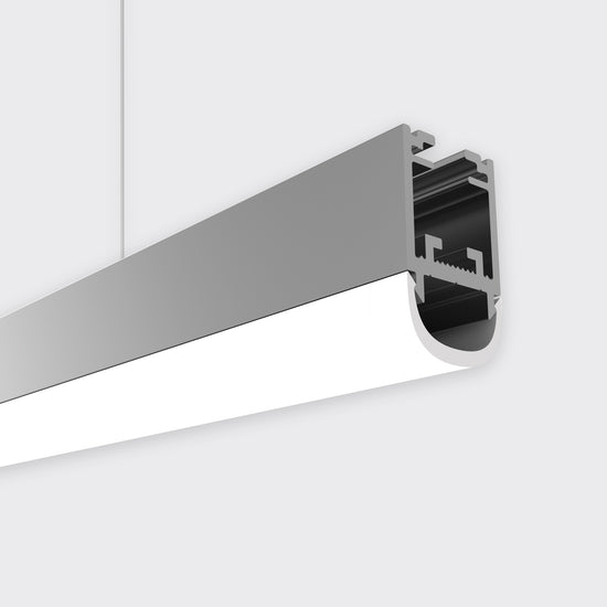 The BASELINE 06 profile with a height of 31mm, is designed for use in general applications and can be suspended or surface mounted. It features a curved diffuser that distributes light over a wider area making it perfect for general applications.