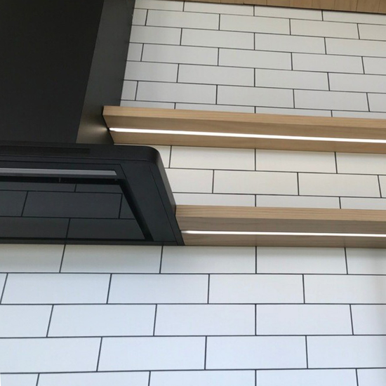 Light transmission through the black diffuser is about 20–30%, therefore, higher wattage LED ribbon is recommended. For a brilliant white result use cool white LED ribbon.