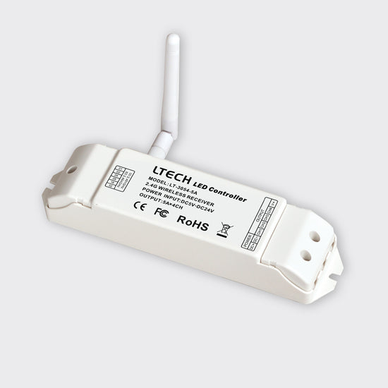 This unit allows wireless communication of PWM signal, with a 2.4GHz ISM 64 channel frequency. For use with a wireless sender, BL-PC-DIM-2001.