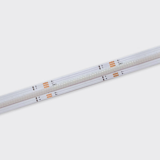 16W/m COB (Chip on Board) RGBW LED Ribbon contains 560 LED chips per metre, all covered by a single line of silicone, providing dot-free continuous illumination. With a rating of IP20, it is suitable for general interior applications. Requires 4-channel controller.