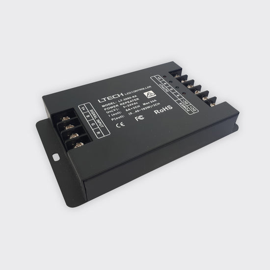This unit is a 3-channel repeater for expansion of the single colour, Tuneable white, or RGB linear LED ribbon strip controllers.