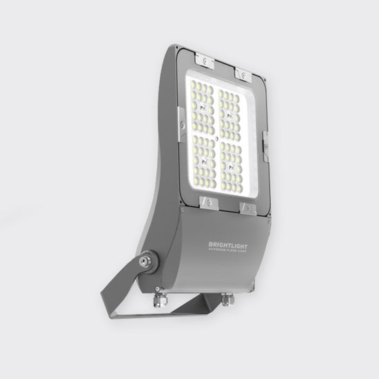 The 75W Hyperion 2.0 LED flood light provides 11,625lm & is engineered for exceptional durability and effortless maintenance. With a 90°×40° beam angle it's perfect for exterior use in loading bays, building signage or carparks. IP66, AkzoNobel grey powder-coat with type 316 stainless steel screws and bolts.