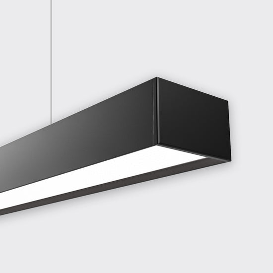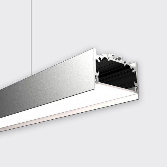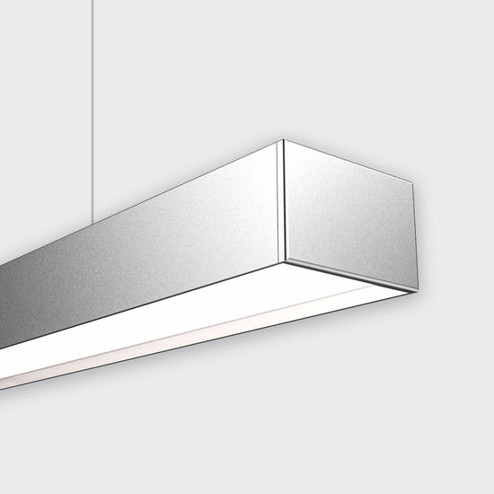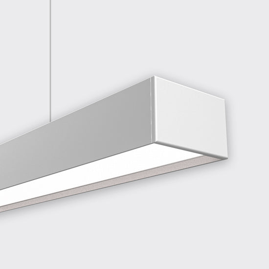 HIGHLINE 02 is designed for large scale use and high-output lighting applications. It features a recessed opal diffuser and can be suspended or surface mounted.