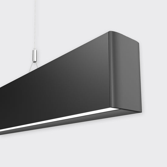 The HIGHLINE 05 100mm luminaire is a popular, modern lighting choice for both residential and commercial lighting applications. It can be either suspended as a pendant to provide both down and up lighting or surface mounted with down lighting only. Available between 1-3metres and made to desired length with standard flat or curved edge end caps options. All Highline 05 Luminaires use our rolled diffuser. Driver onboard.