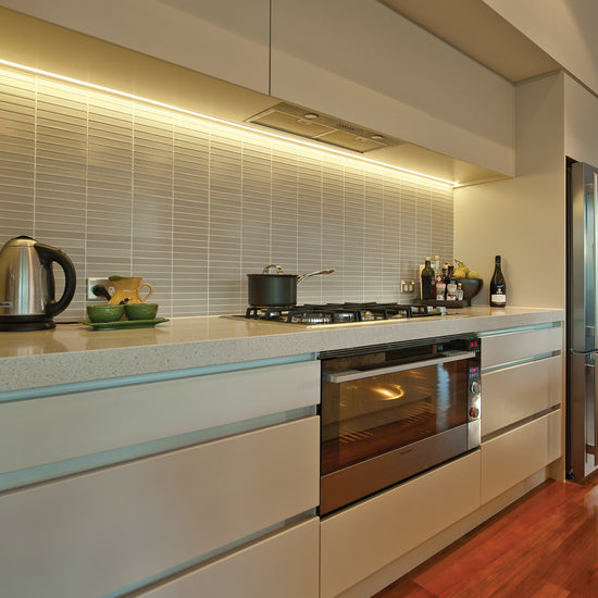 LOWLINE 02 MINI is a shallow, recessed profile which uses our rolled opal diffuser and incorporates a stylish trim. With a height of just 10mm it is perfect where space is at a premium, making it ideal for use in recessed applications such as cabinetry. Installation via a friction-fit mounting system and the 3mm trim provides for a clean finish.