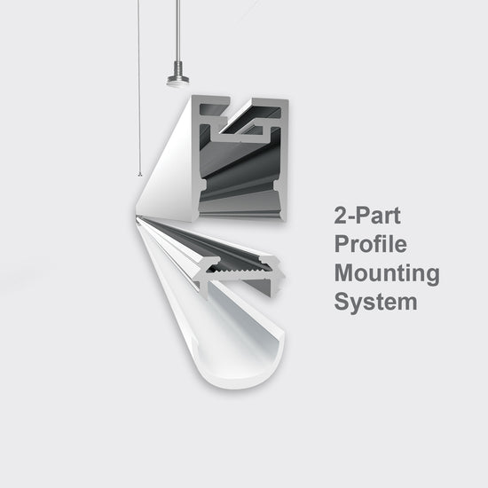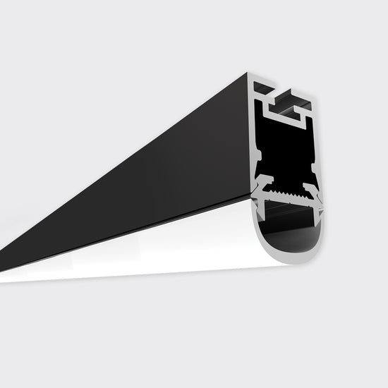 The Techline range 2-Part Profile Mounting System allows for the pre-installation of LED ribbon prior to screw-fix mounting the base, allowing quicker on-site installation - simply ‘clip’ the assembled light engine in.