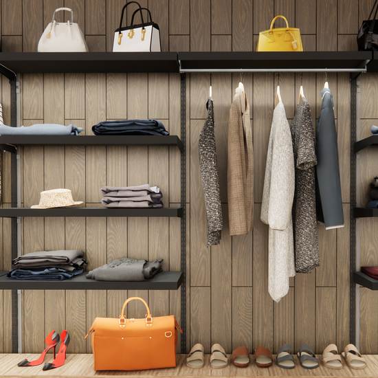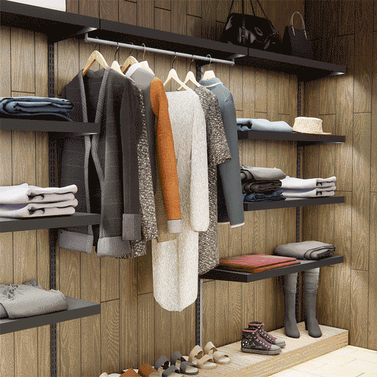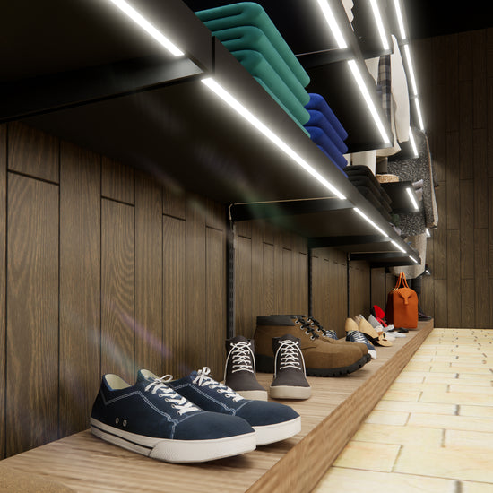 Flexi ShelfTrack is an adjustable mini track system with LED adaptor clips, allowing easy lighting connection anywhere along the track.