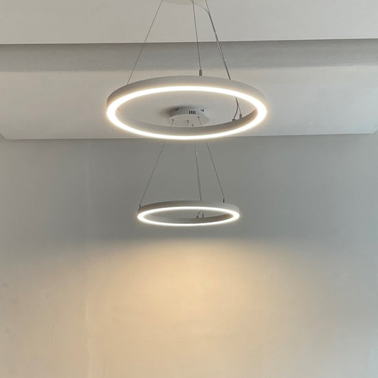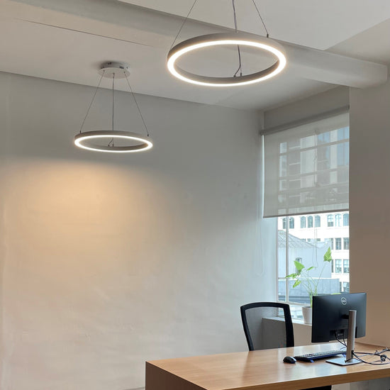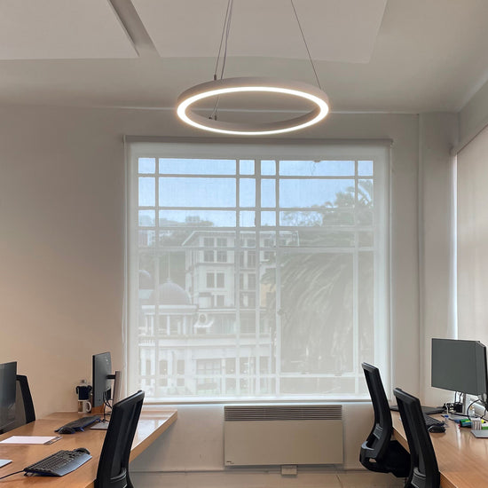 These W32 × 38mm Ring pendants provide an eye-catching feature to any space and are available in several diameters. The central mounting bracket makes installation simple.