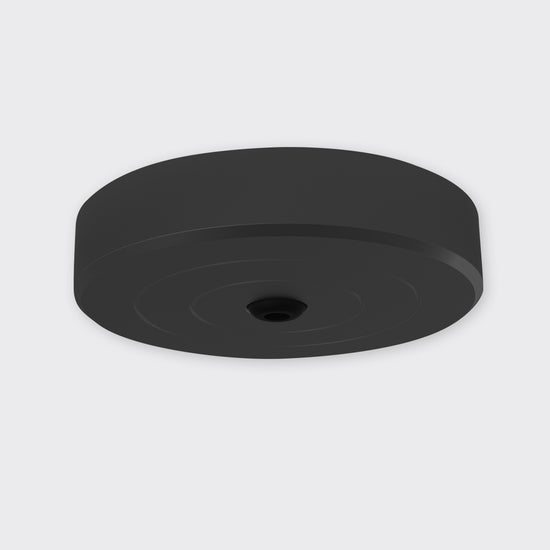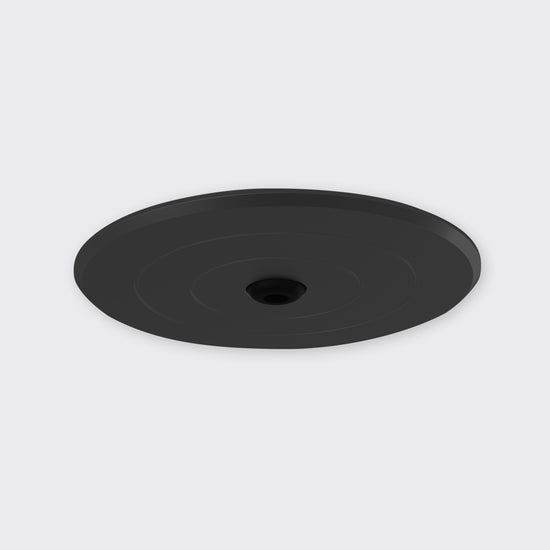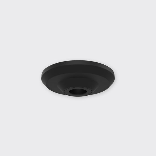 Cable base for power feed in ceiling cavity. Available in surface and recessed options, in anodised aluminium, black or white finishes.